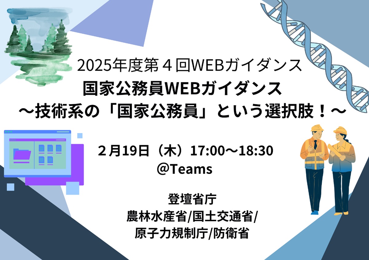 2025年度第4回目のWEBガイダンスでは、技術系の職員が登壇します。