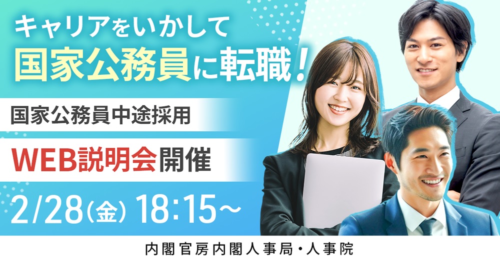 2025年2月28日(金)に内閣官房内閣人事局・人事院主催「国家公務員中途採用WEB説明会」を開催しました。