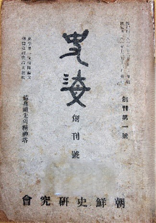 同誌は第2号までの発刊で終わってしまったとされるが、くだんの「朝鮮史研究会」の「主幹」には李丙燾(イ・ビョンド、1896-1989)なる、当時の韓国における歴史学会の重鎮の名が掲げられているところから、これに先立つ米軍政下において軍政庁から歴史教科書の編纂を委嘱されていた「震檀学会」(1934年5月設立)の、言わば歴史学系の別働組織と言って差し支えない。