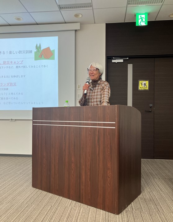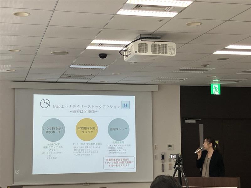 さらに、乳幼児のいる家庭では、普段使っているマザーズバッグやパパバッグがそのまま外出時の備えになるとし、抱っこ紐や子どもの靴を必ず持ち歩くことを呼びかけました。加えて、防災では「命」を守るだけでなく、その後の「健康」と「生活」も守らなければならないと指摘し、不眠、便秘、胃腸炎、心の不調などへの備えの必要性にも触れました。その上で、「防災はオーダーメードである」と述べ、年齢、住まい、家族構成、持病やアレルギーなどによって必要な備えは異なるため、自分や家族の日常を見直し、その中に防災の視点を取り入れることが第一歩になるとまとめました。