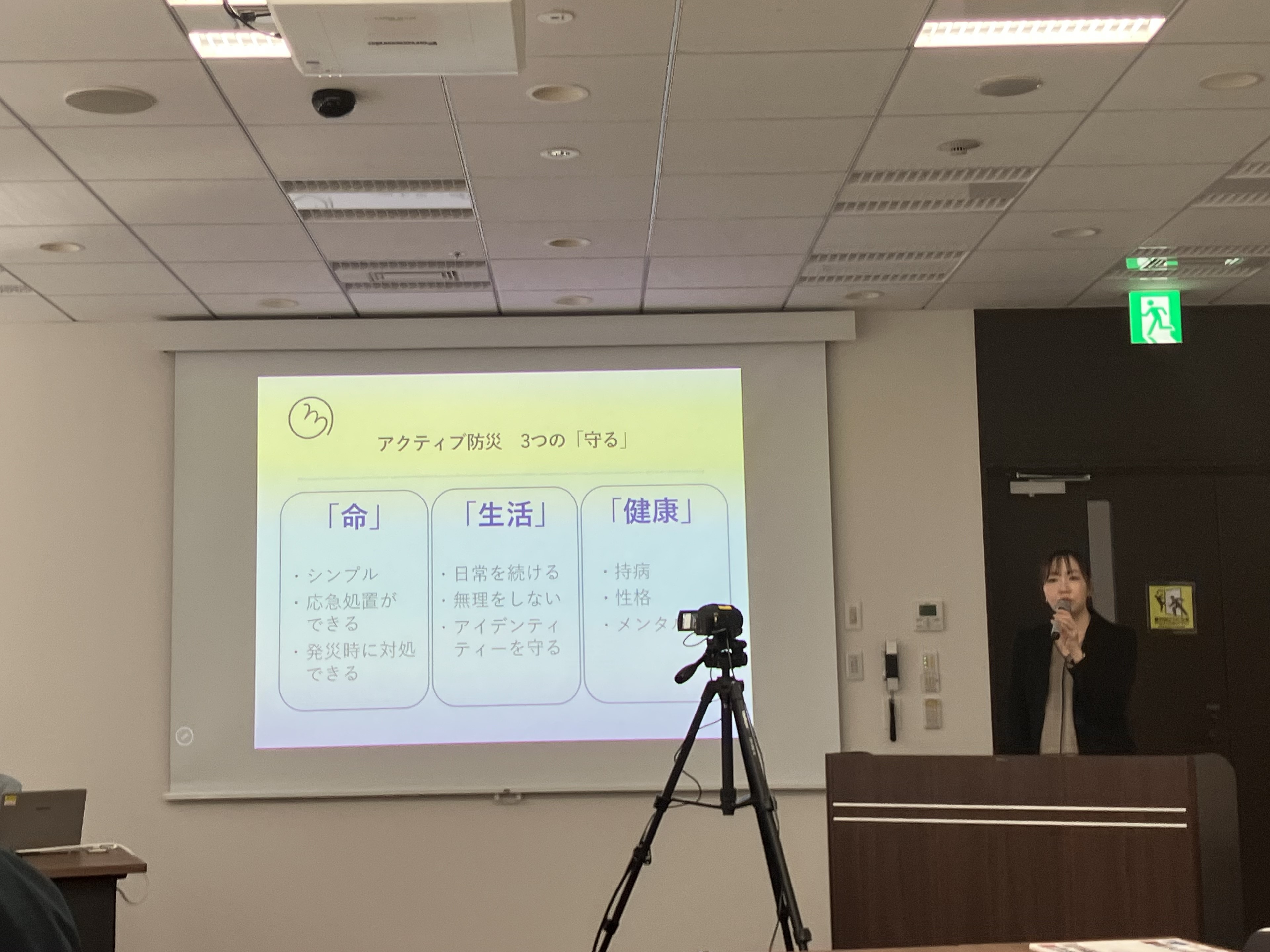 宮丸氏は、ワークショップで参加者同士が意見を交わしながら多くの気づきが生まれたことを評価しました。その上で、防災を継続するためには「日常に溶け込ませること」が重要だと改めて強調しました。普段使っているものや生活習慣の多くは災害時にも役立つため、日常の中に防災の視点を取り入ることが家庭の防災力を高めることにつながると述べました。