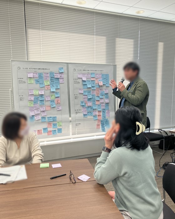 講演後、参加者全員で、日常生活を振り返り、子どもや自分自身の状況を整理した上で、それぞれに必要な備えについて意見を出し合うグループワークを行いました。最後に、各自が気づいたことを発表しました。