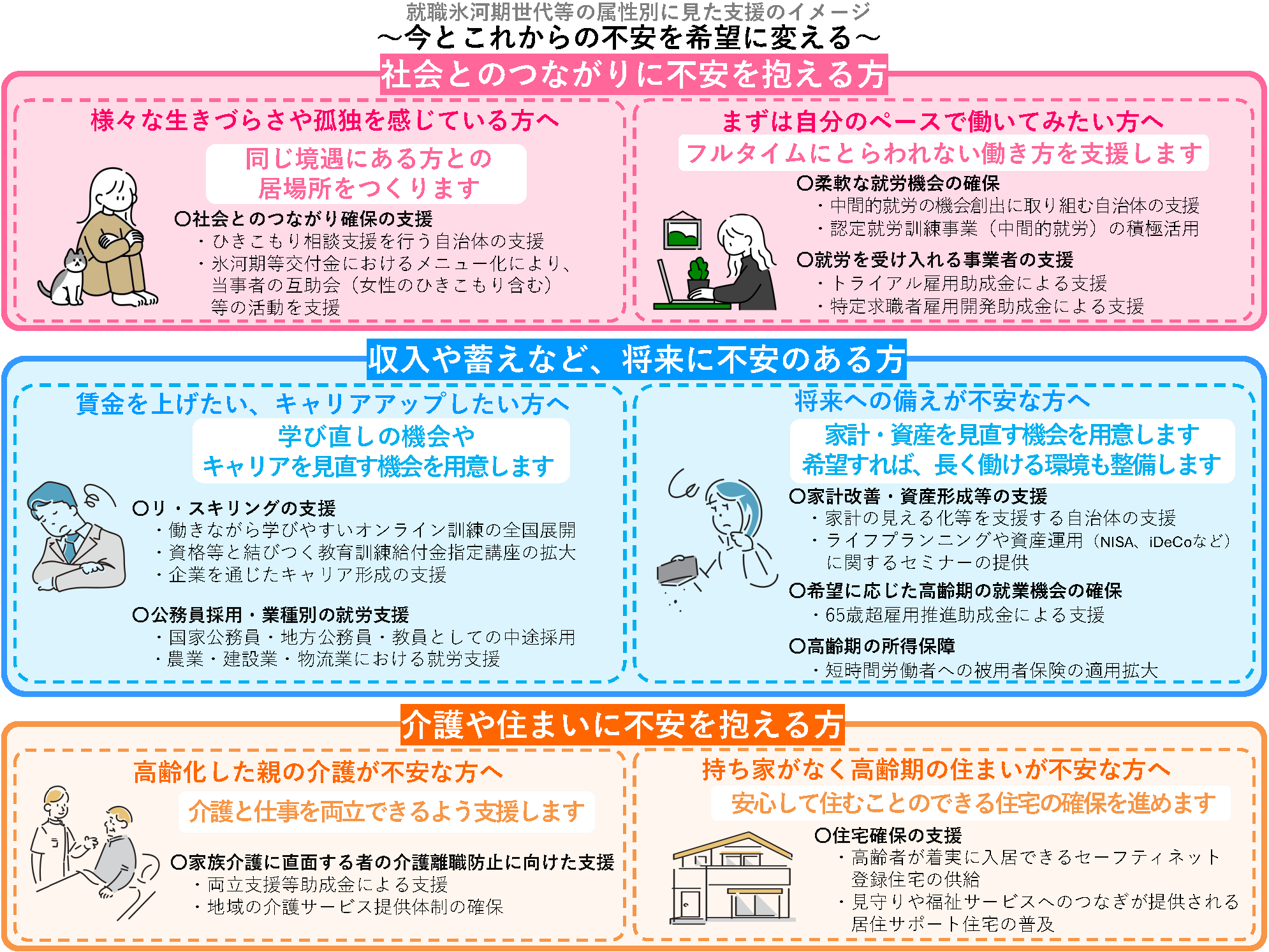 就職氷河期世代等の方々が利用できる施設・施策について、ご紹介します。