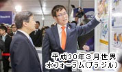 ![]() 平成28年の渇水時の矢木沢ダム (群馬県) ![]() 再生水を親水用水として活用している「せせらぎの里」(東京都) ![]() 日本パビリオンにて皇太子殿下に対し我が国の水循環施策について説明する秋本国土交通大臣政務官 | |