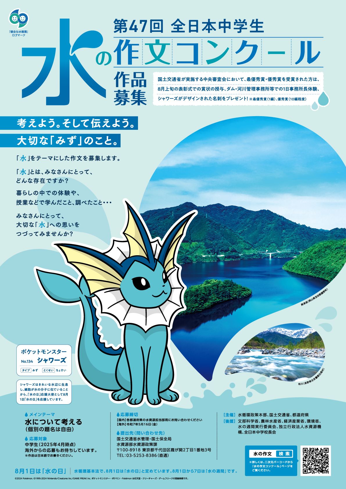 政府では、閣議了解の下、昭和52年から毎年8月1日を「水の日」、8月1日から7日までを「水の週間」として、「全日本中学生水の作文コンクール」をはじめ、水に関する様々な啓発行事を実施しています。